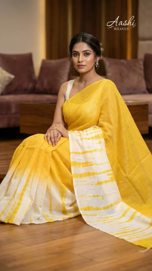 Add a refreshing touch to your ethnic collection with this Sunshine Yellow Linen Cotton Saree, designed for effortless elegance and comfort. Crafted from a soft and breathable linen cotton blend, this saree features a beautiful digital print pattern on the pallu, creating a stylish contrast with the vibrant yellow base.